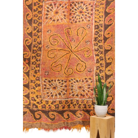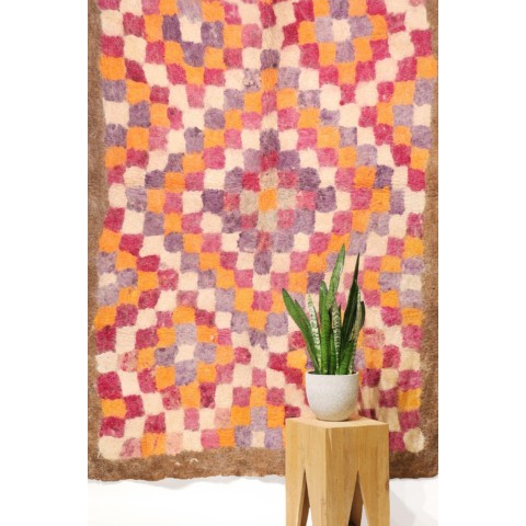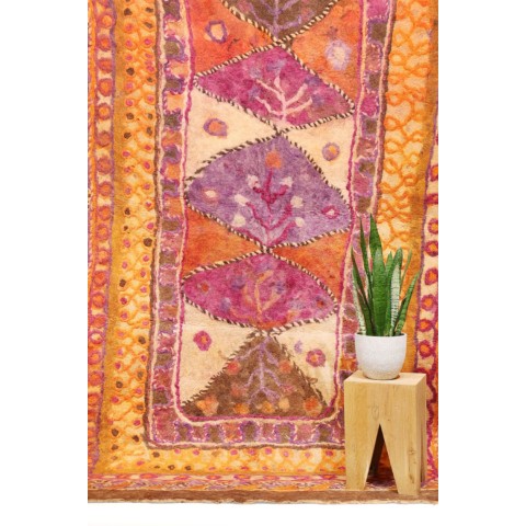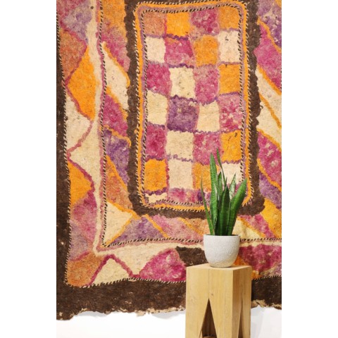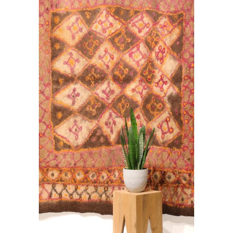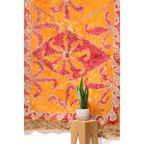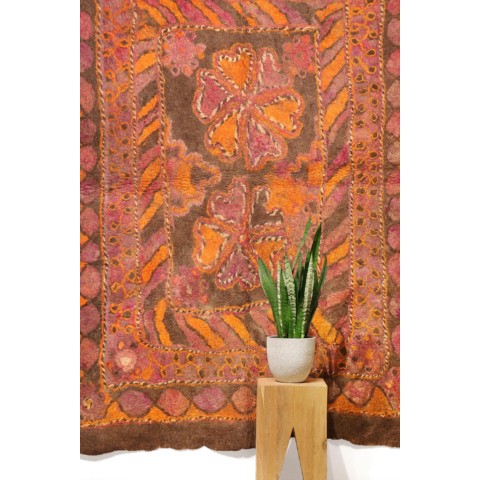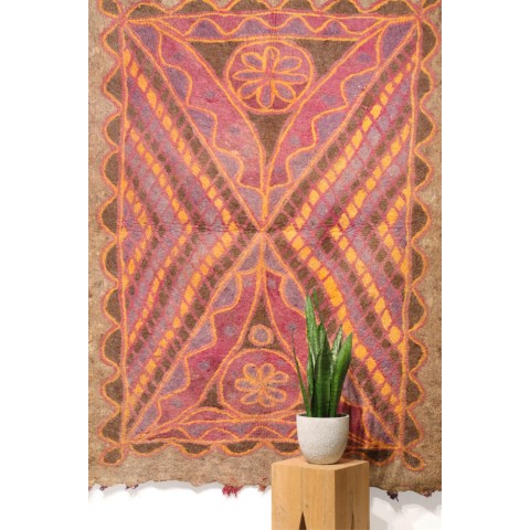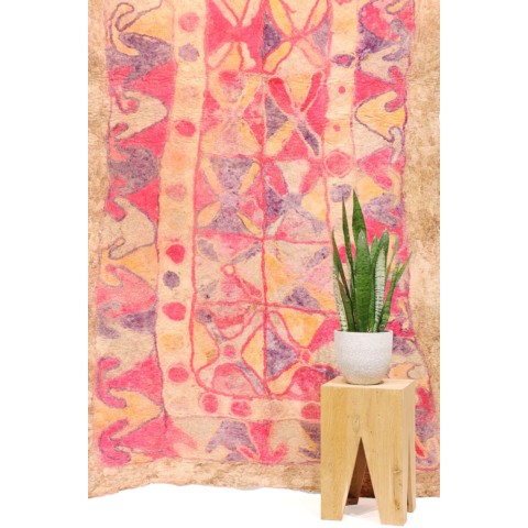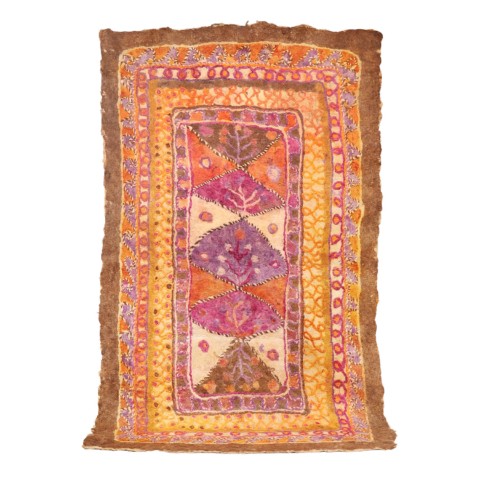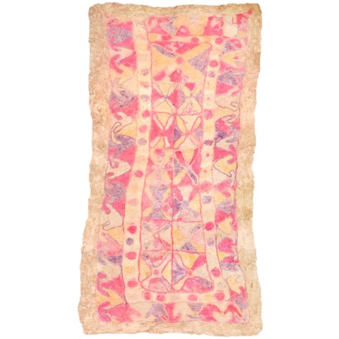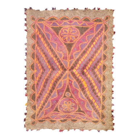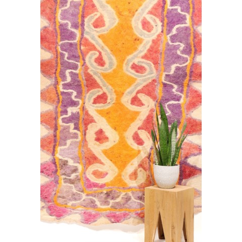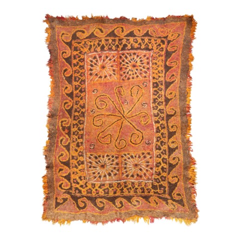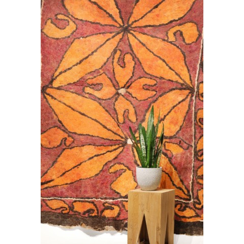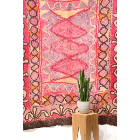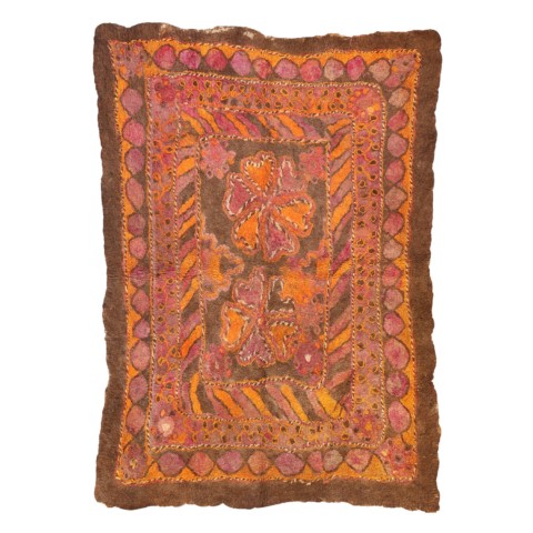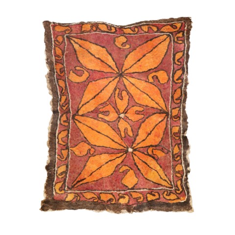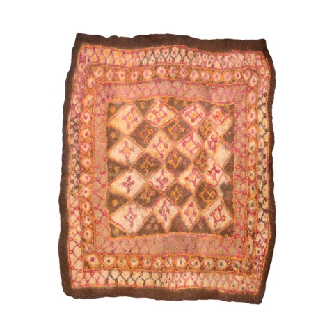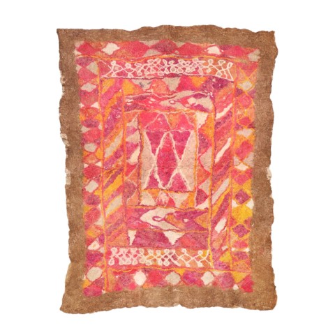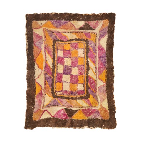 FELT is a material produced by process of felting, the entanglement of animal fiber in all directions, appropriately done to form a soft and homogeneous mass. The technique was originally devised in nomadic communities of Central Asia , spreading toward China and the Greek world well before the 3rd century B.C.E., but for a long time confined to the Asian continent. It was in the wake of the avant-garde movements’ attraction to the so-called ‘primitive’ arts that the archaic and mysterious character of the patterns of felts aroused the interest of artists, collectors and interior designers.