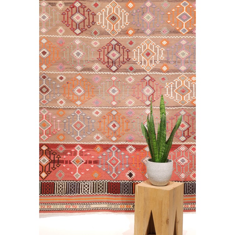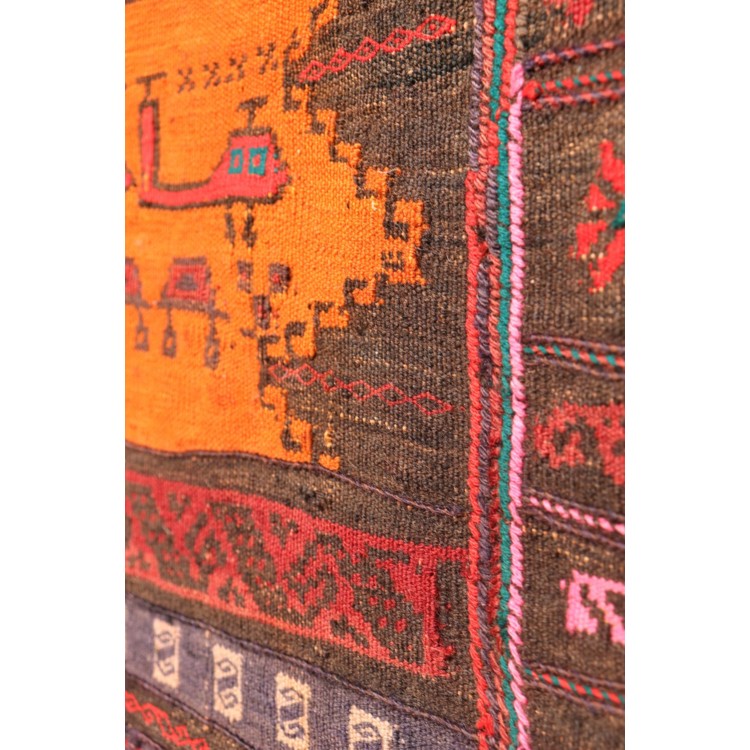 Kilims are flat tapestry-woven textiles without knotting. Kilims traditionally weren´t woven with comercial purpose, but for domestic use, and therefore the women weren´t under pressure to change their designs, nor follow fashion or external taste. Thanks to this, their designs have continued until over time. Normally they weave with sheep´s wool, but occasionally nomads use camel and goat´s wool. Also, as decoration they can add glass or ceramic beads and textile strips.