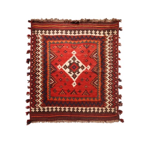 Semi-antique Afshar sofreh kilim from Iran. 115×115 cms