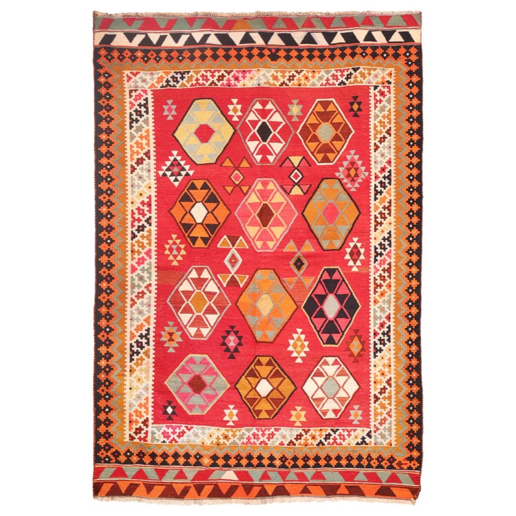 Semi-antique Arabic Shiraki kilim from Iran. 222×149 cms