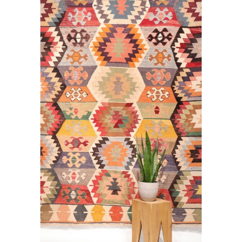 Vintage Barak kilim with Elibelinde from Turkey. 250×165 cms