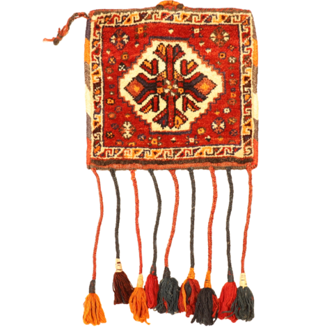 Semi-antique Qashqai bag or chanteh from Iran. 30×30 cms