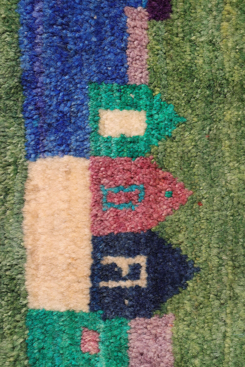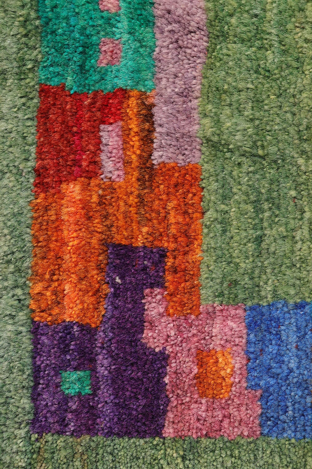 Traditionally a sleeping rug, a gabbeh is a hand-woven pile rug of coarse quality characterized by an abstract design that relies upon open fields of color and a playfulness with geometry. This type of rug is popular among the populations of the Zagros Mountains of Iran, including Kurdish, Luri and Qashqai people.The gabbeh is usually woven by women.