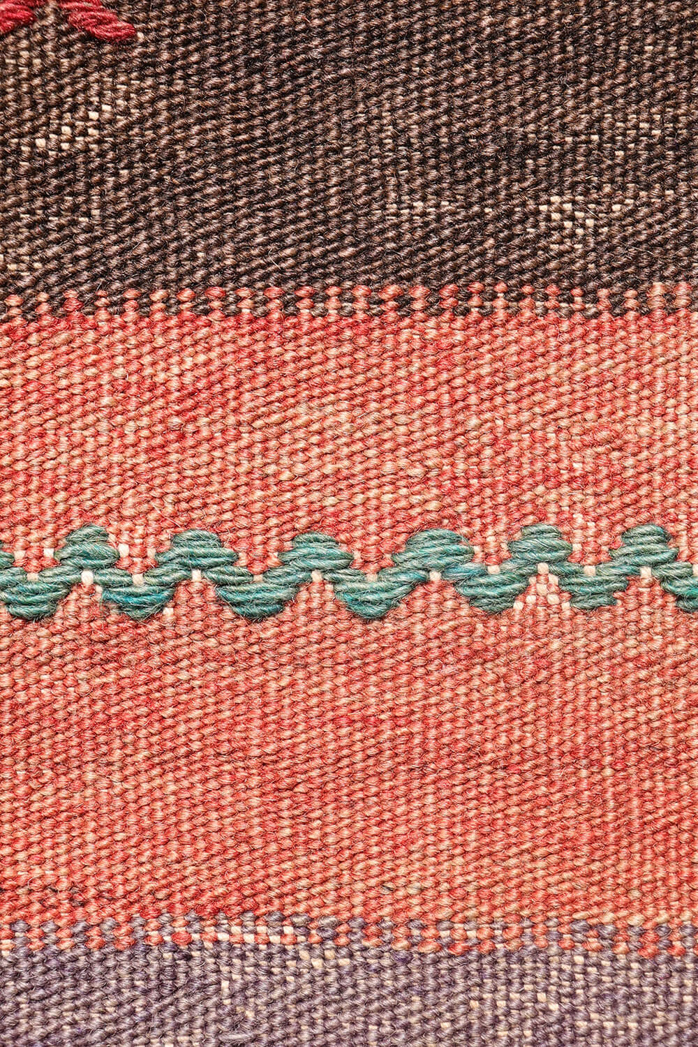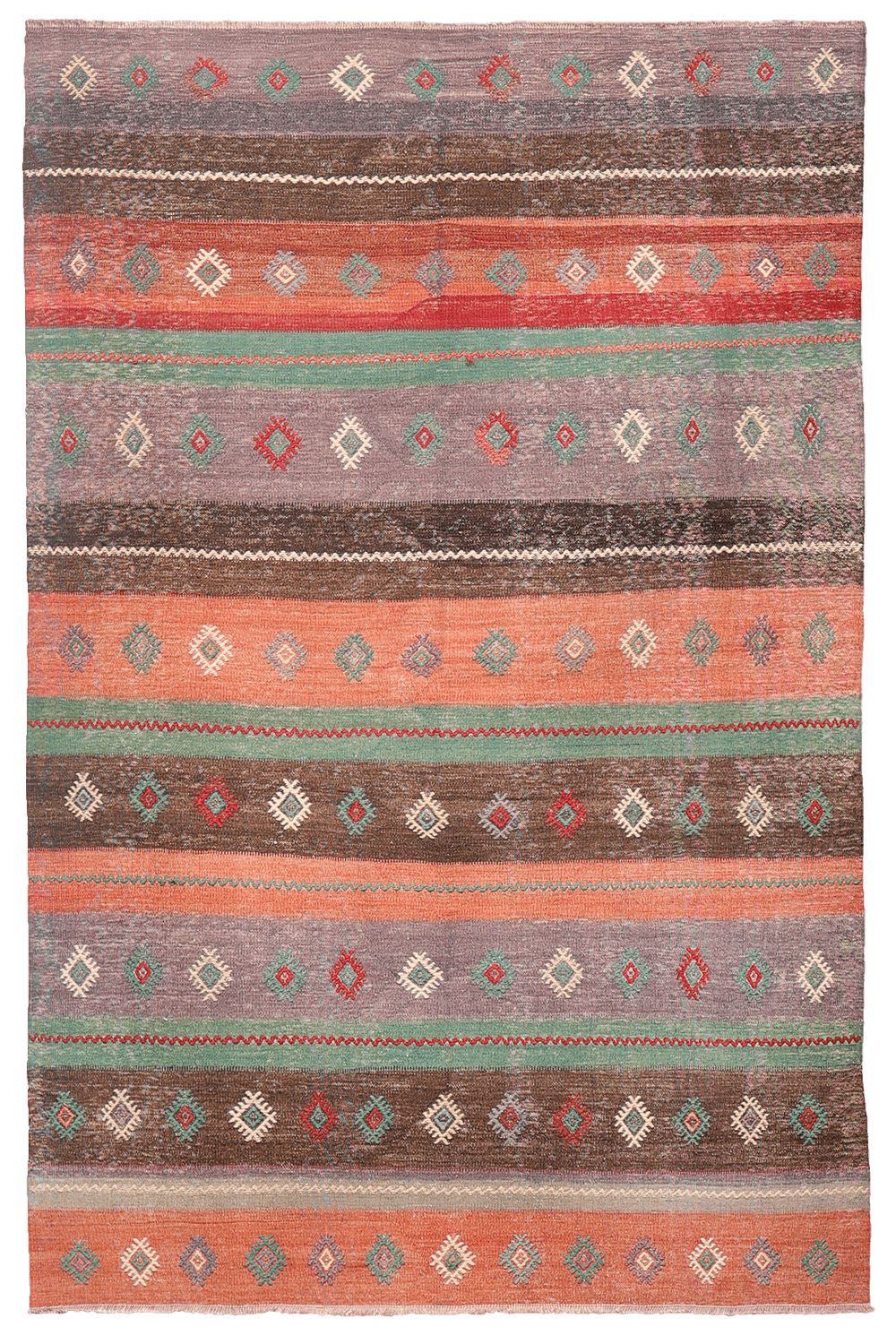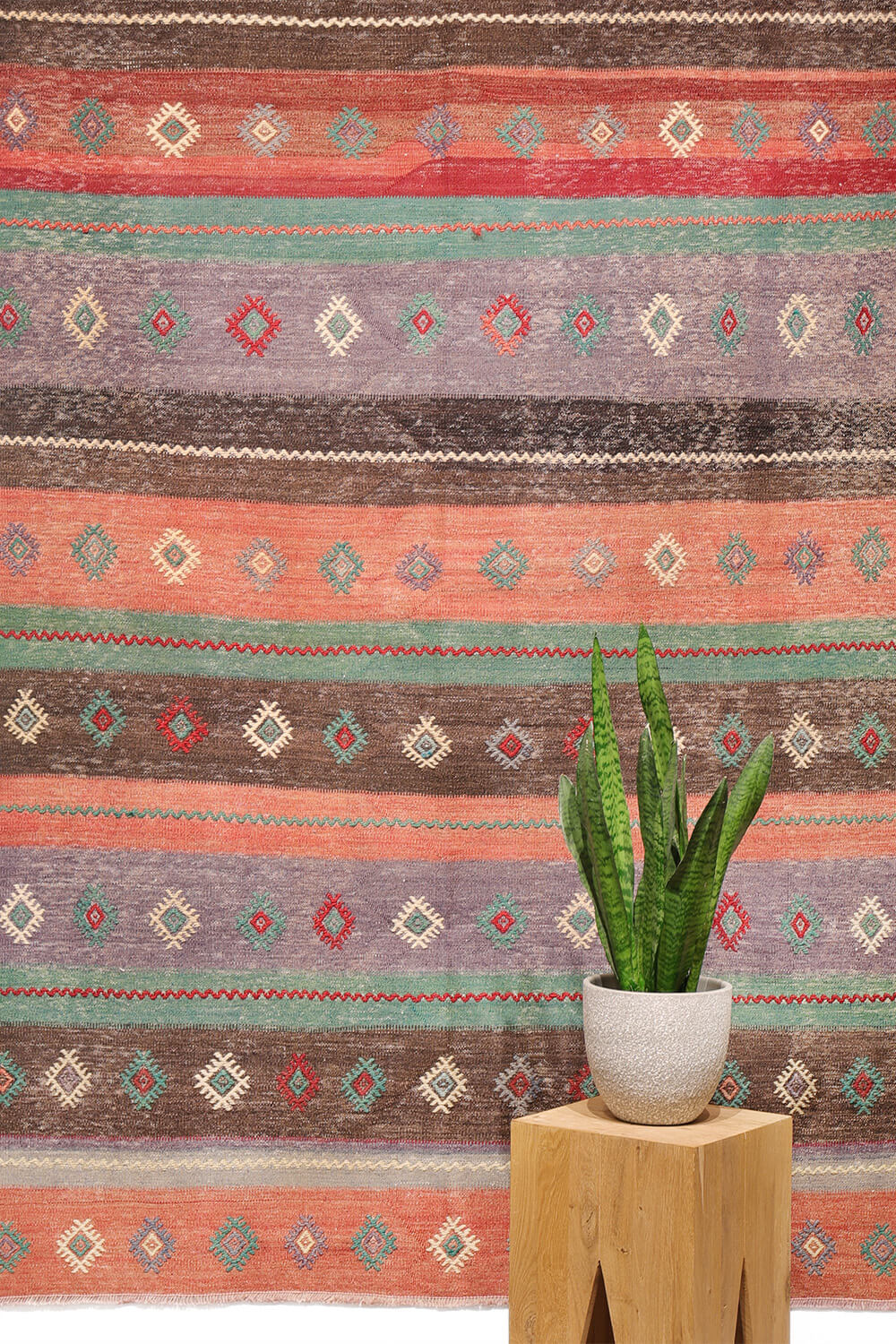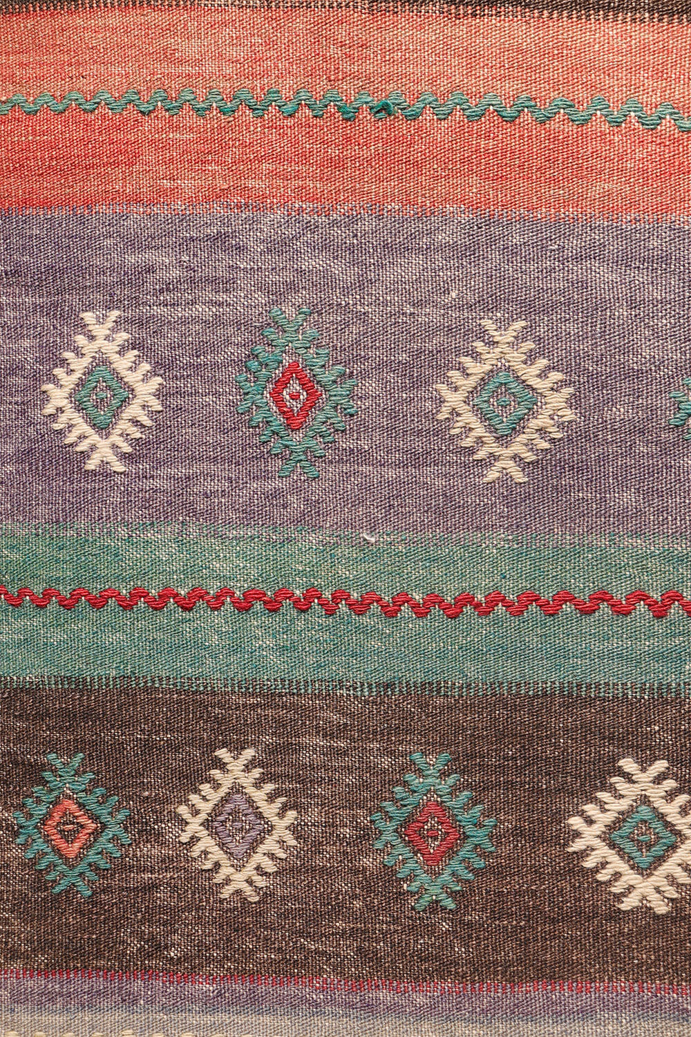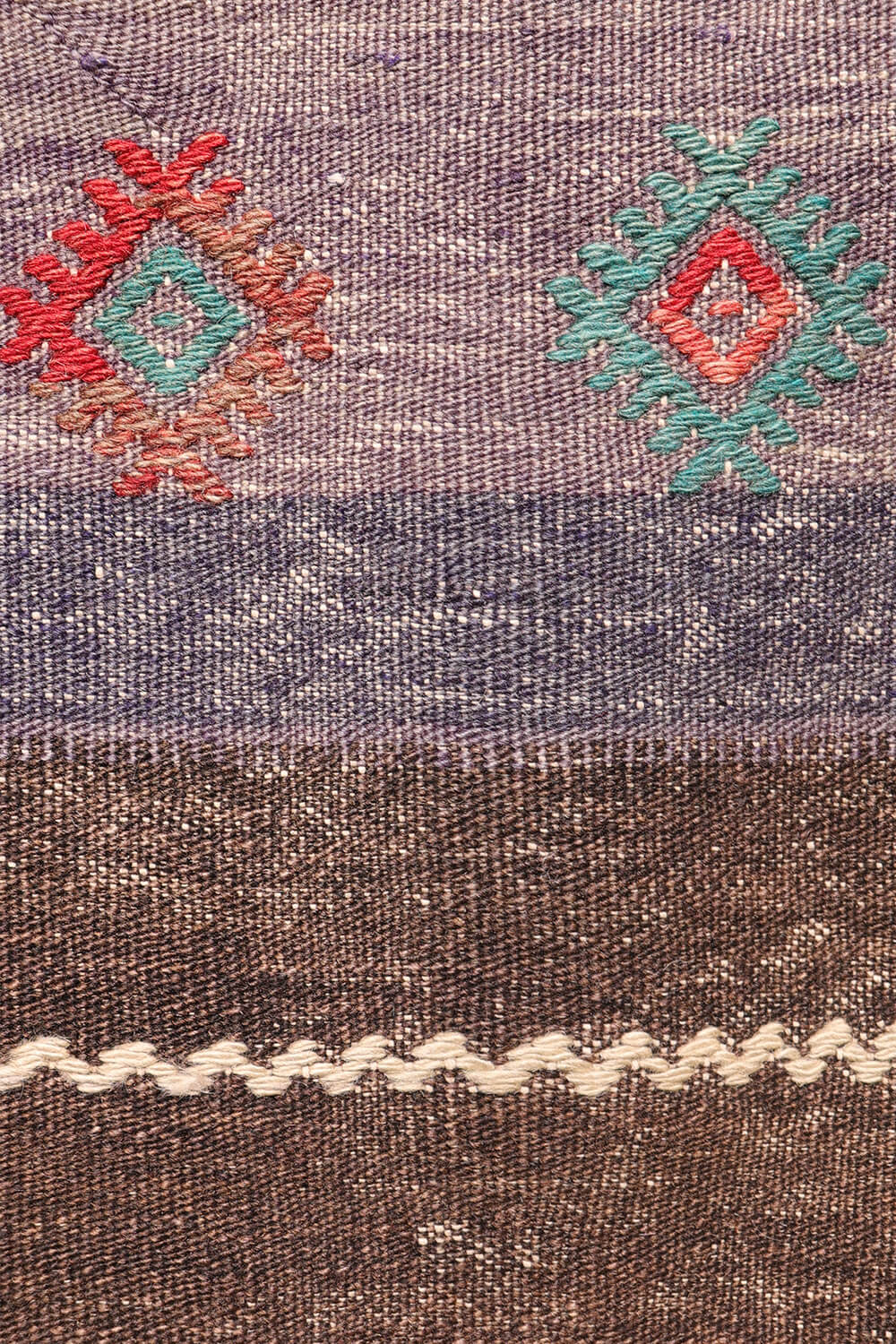 Notably, this kilim has no enclosing borders, allowing the motifs to extend visually beyond the edges and creating a more open, expansive effect.