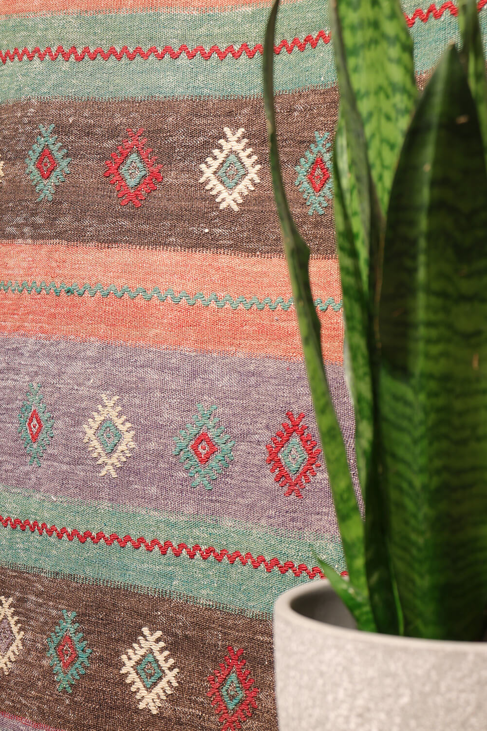 With its cool colour palette, understated design, and practical size, this kilim integrates effortlessly into contemporary interiors.