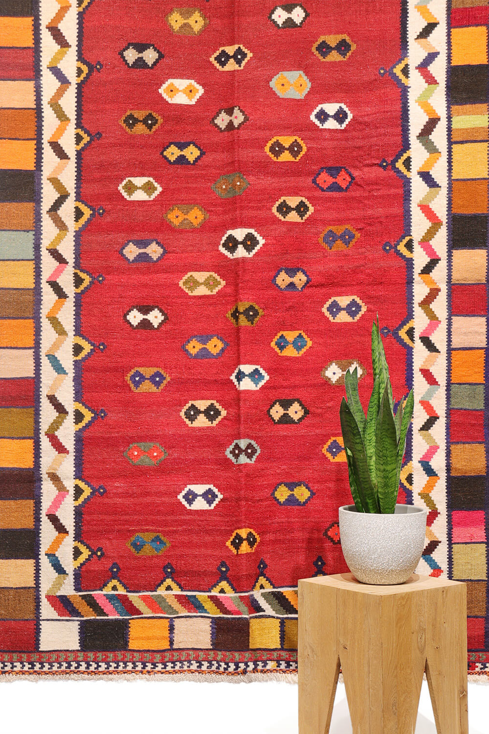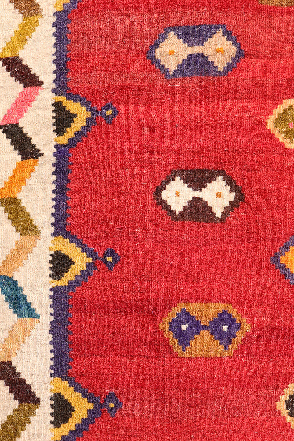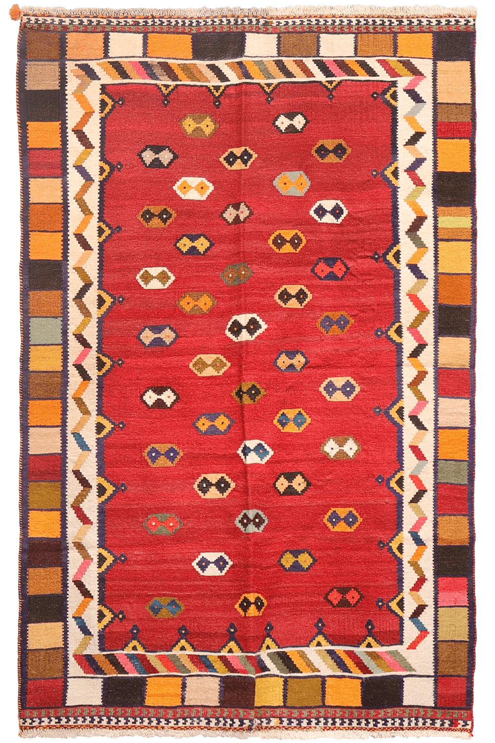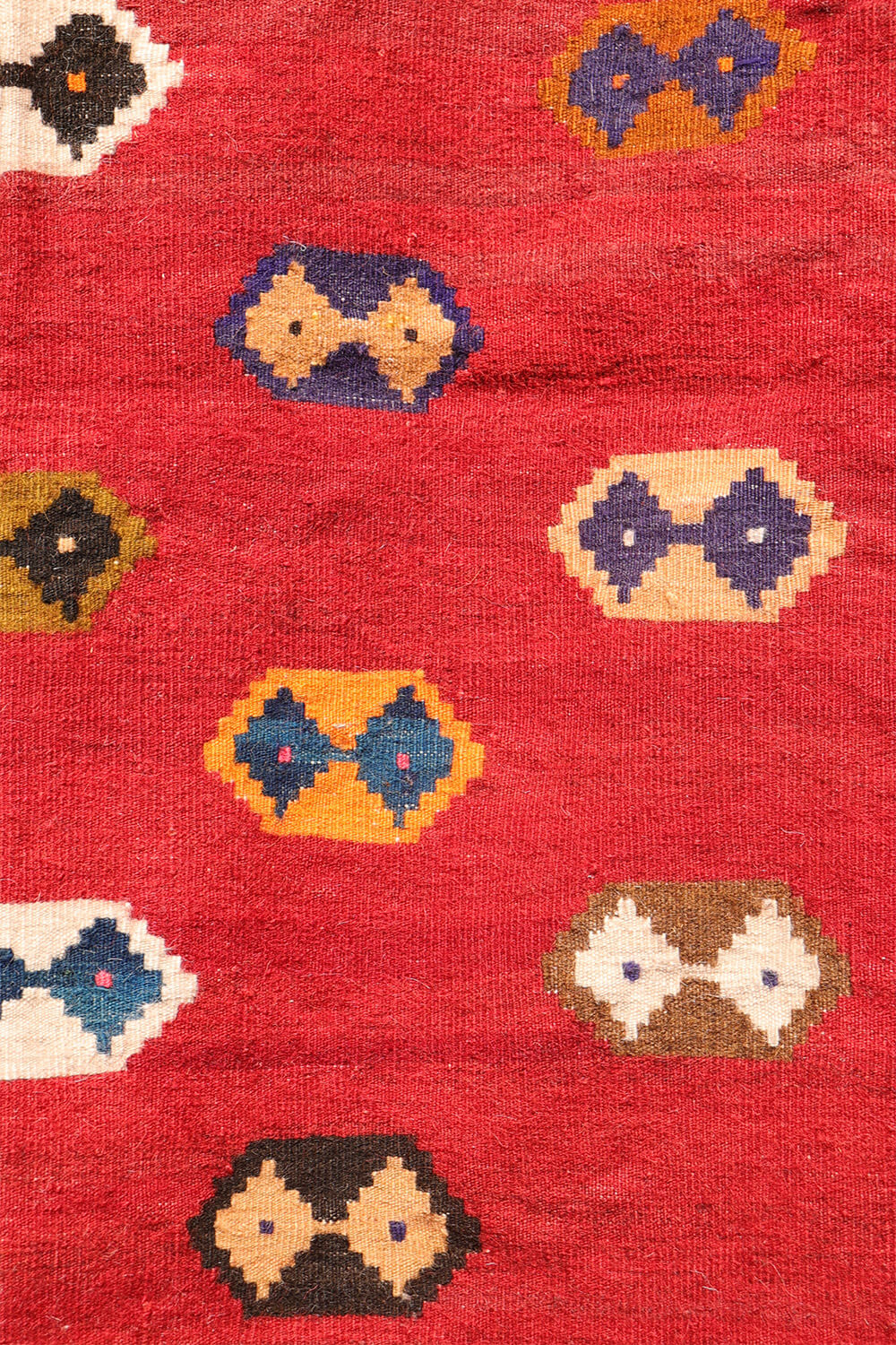 Qashqai kilims are best known for their boldness and freedom in the way the pattern is drawn. An aesthetically pleasing geometry, the fineness of their wool and their clear, strong colours combine to ensure their reputation as superlative examples.