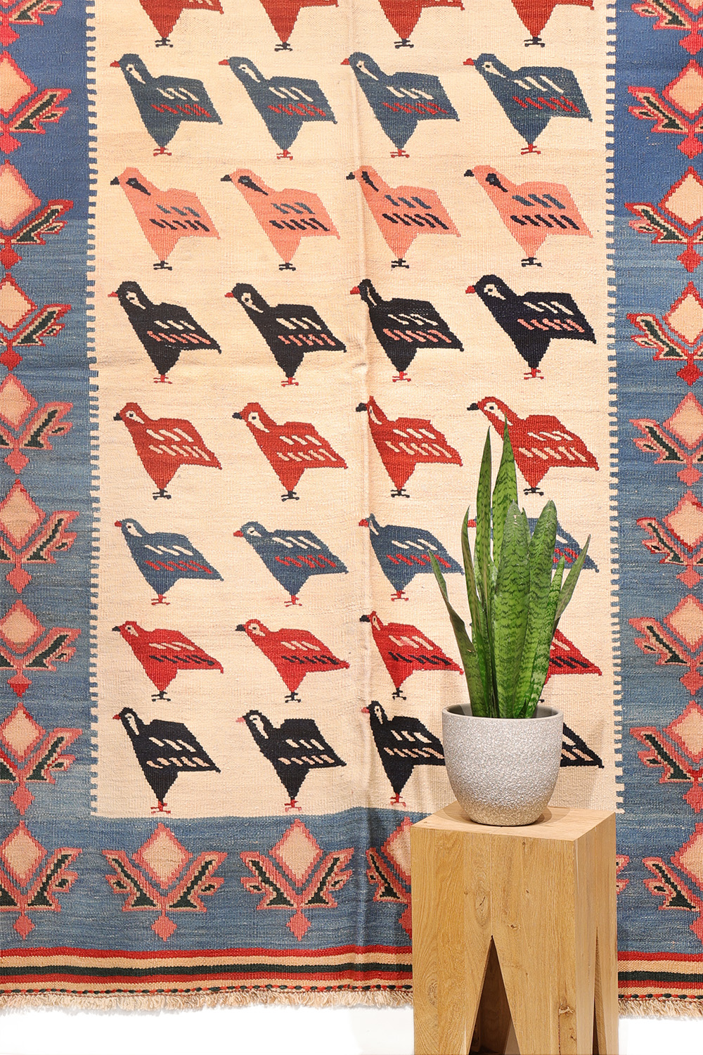 This is a thick and sturdy kilim, ideal for high-traffic areas and guaranteed to be a conversation starter!