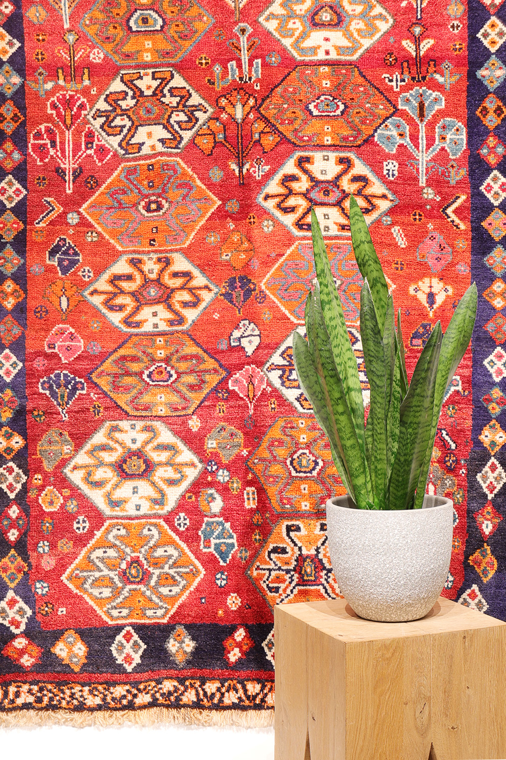 Perfect for adding a pop of vintage charm to modern, bohemian, or rustic interiors, this authentic Qashqai tribal rug is both a decorative and collectible piece.