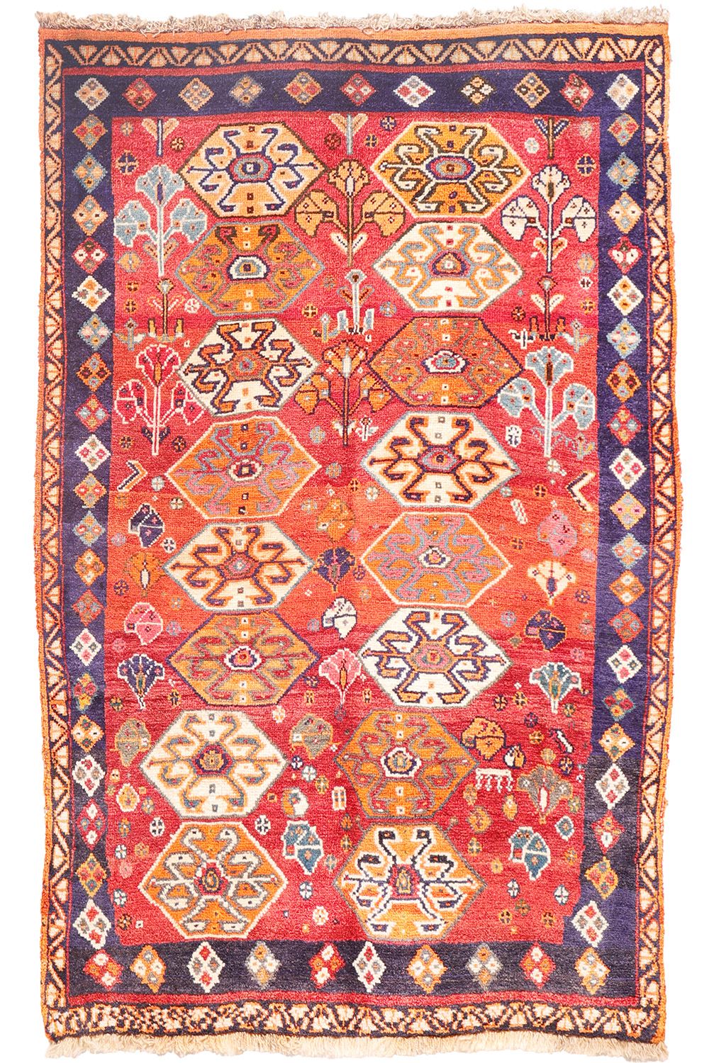 Cheerful Vintage Qashqai Rug – Colorful Tribal Motifs & Kilim-Inspired Design
