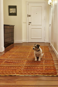Saskia is very happy with the antique Sistan kilim she bought for her owner!