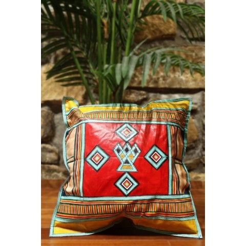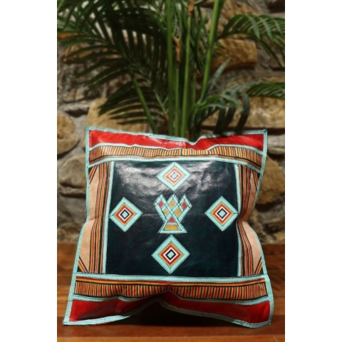 Cojín étnico de cuero Tuareg, Niger. 40×40 cms