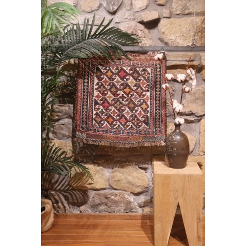 Kilim semi antiguo Qashqai, Irán. 57×60 cms