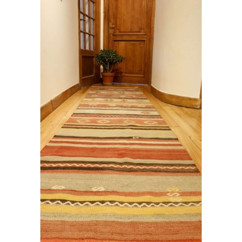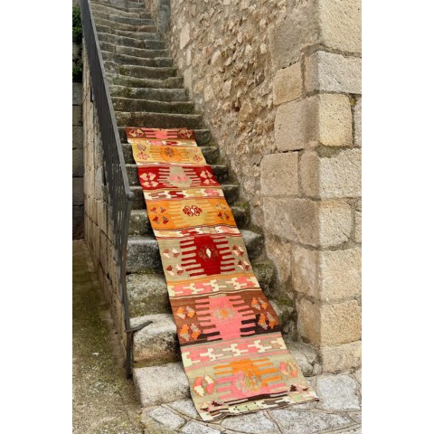 Kilim vintage de Karaburna, Turquía. 312×75 cms