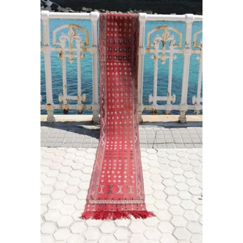 Kilim vintage de pasillo Herki Kurdo, Irak. 300×87 cms