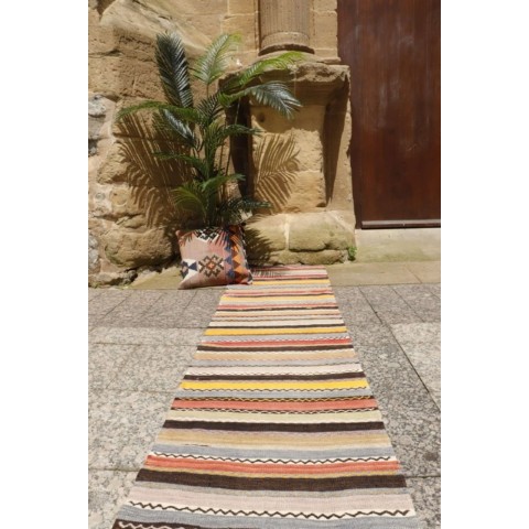 Kilim vintage de Canakkale, Turquía. 275×90 cms