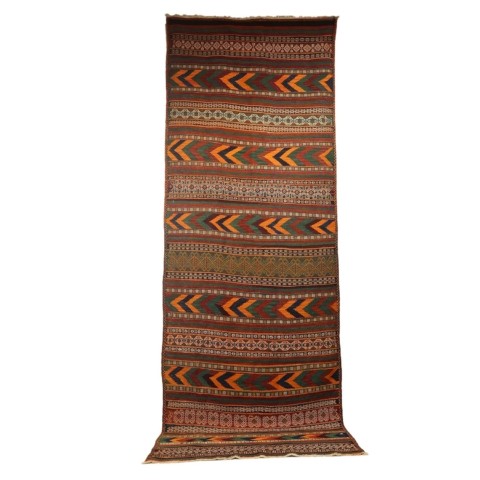 Kilim semi antiguo Aimaq Baluch, Afganistán. 335×83 cms