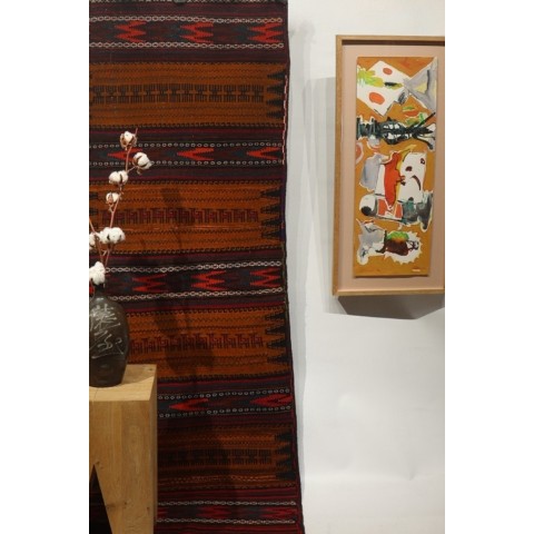 Kilim vintage Herki kurdo, Irak. 366×80 cms