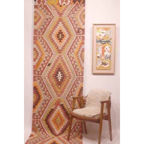 Kilim vintage de Sivas, Turquía. 308×33 cms