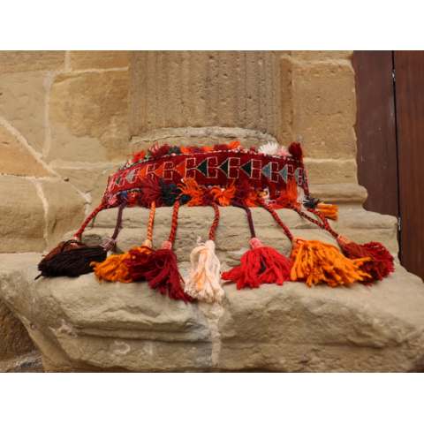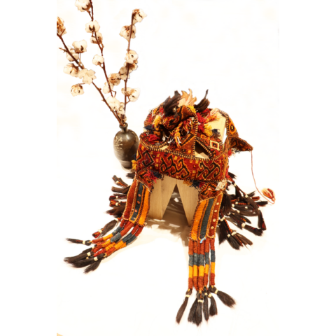 Tocado semi antiguo para camello, Kirguistán. 100×52 cms