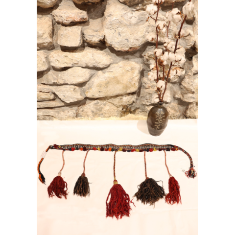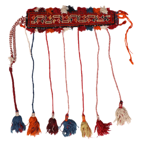 Banda semi antigua para caballo o camello Qashqai, Irán. 83×5 cms