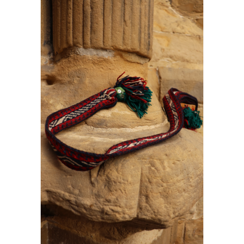 Banda semi antigua Qashqai para caballo o camello, Irán. 590×9 cms