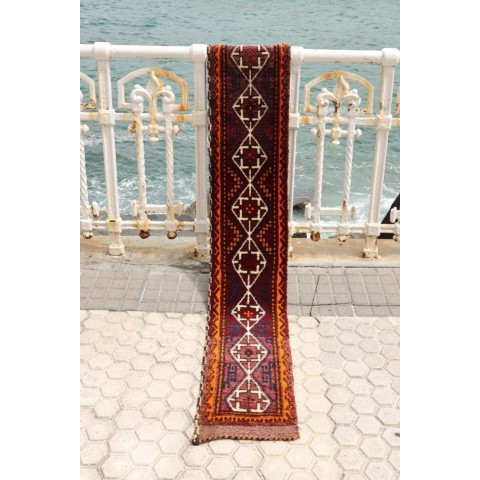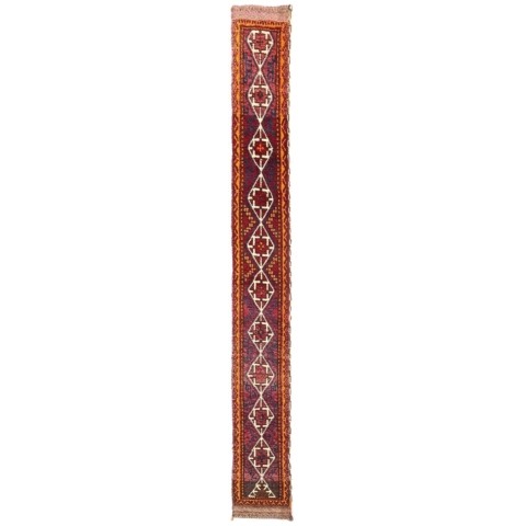 Alfombra vintage Baluch, Afganistán. 252×33 cms