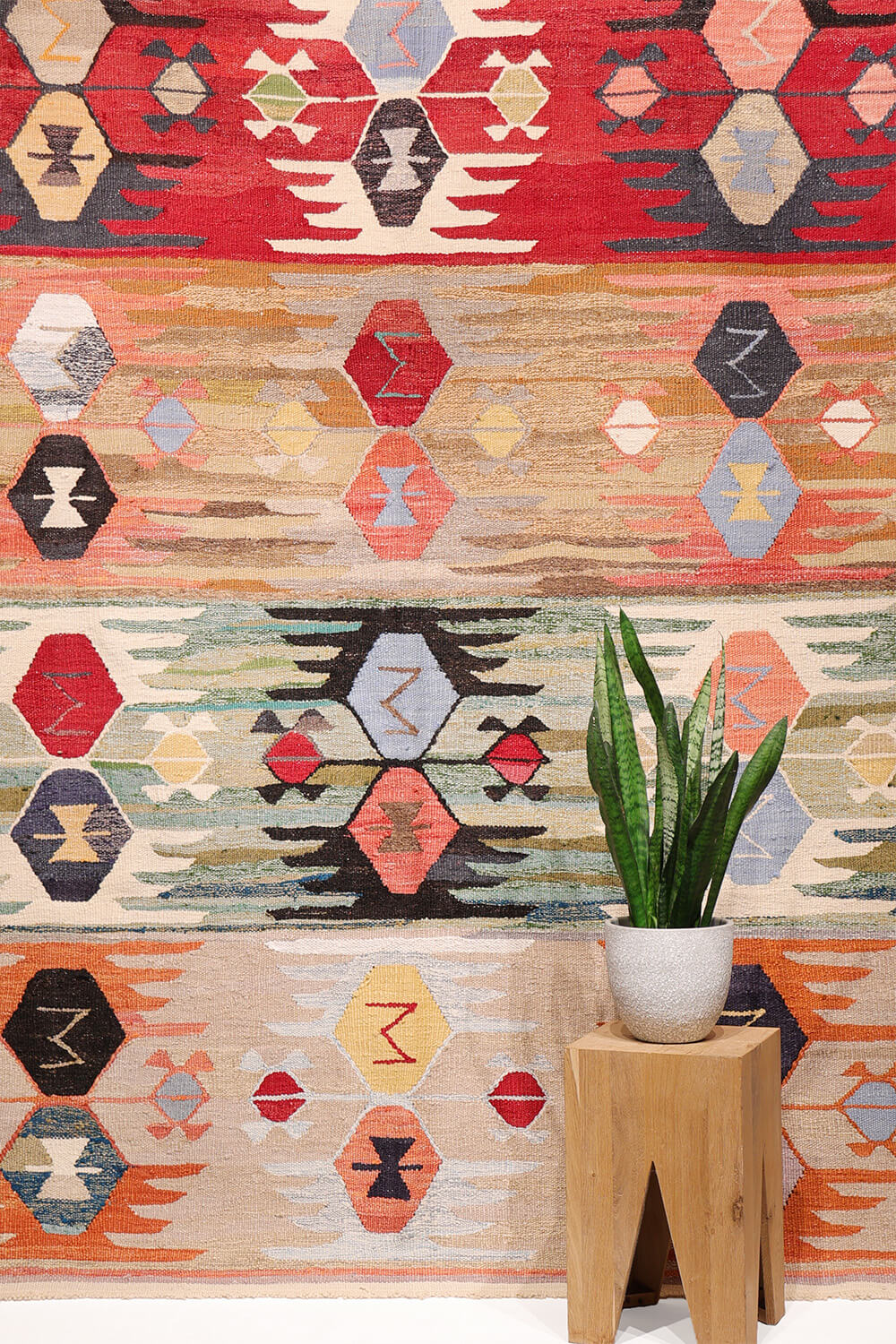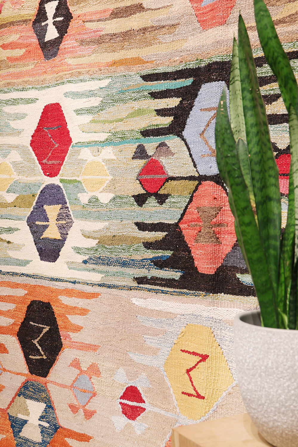 Elegir un kilim tejido con hilos recuperados es vestir el espacio con un textil único, rico en historia, respetuoso con el medio ambiente y elaborado con una belleza perdurable.