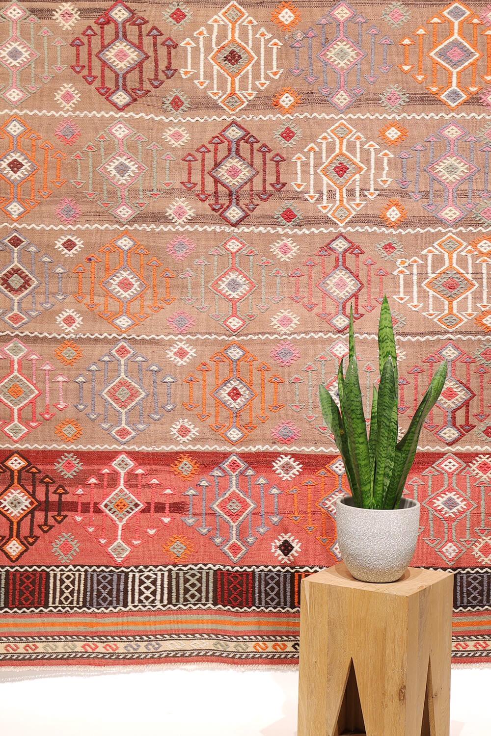 Es un kilim grueso y resistente, perfecto para zonas de alto tránsito.