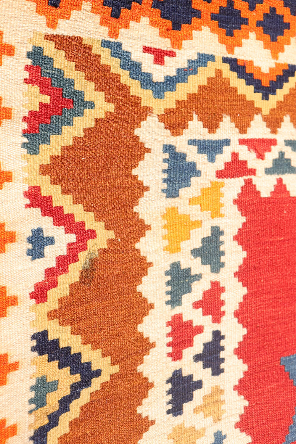 Los grupos tribales pastorales nómadas de habla turca comenzaron a entrar en el centro y sur de Irán durante los siglos XI y XII. Los Qashqai, como una gran unidad tribal, se remonta al menos a principios del siglo XVIII, cuando algunos grupos tribales de habla turca (turki) en la región existían bajo el nombre de Qashqai. Los kilims Qashqai son conocidos por su audacia y libertad en la forma en que se dibuja el patrón, una geometría estéticamente agradable, la finura de su lana y sus colores claros y fuertes se combinan para asegurar su reputación como ejemplos superlativos del arte textil.